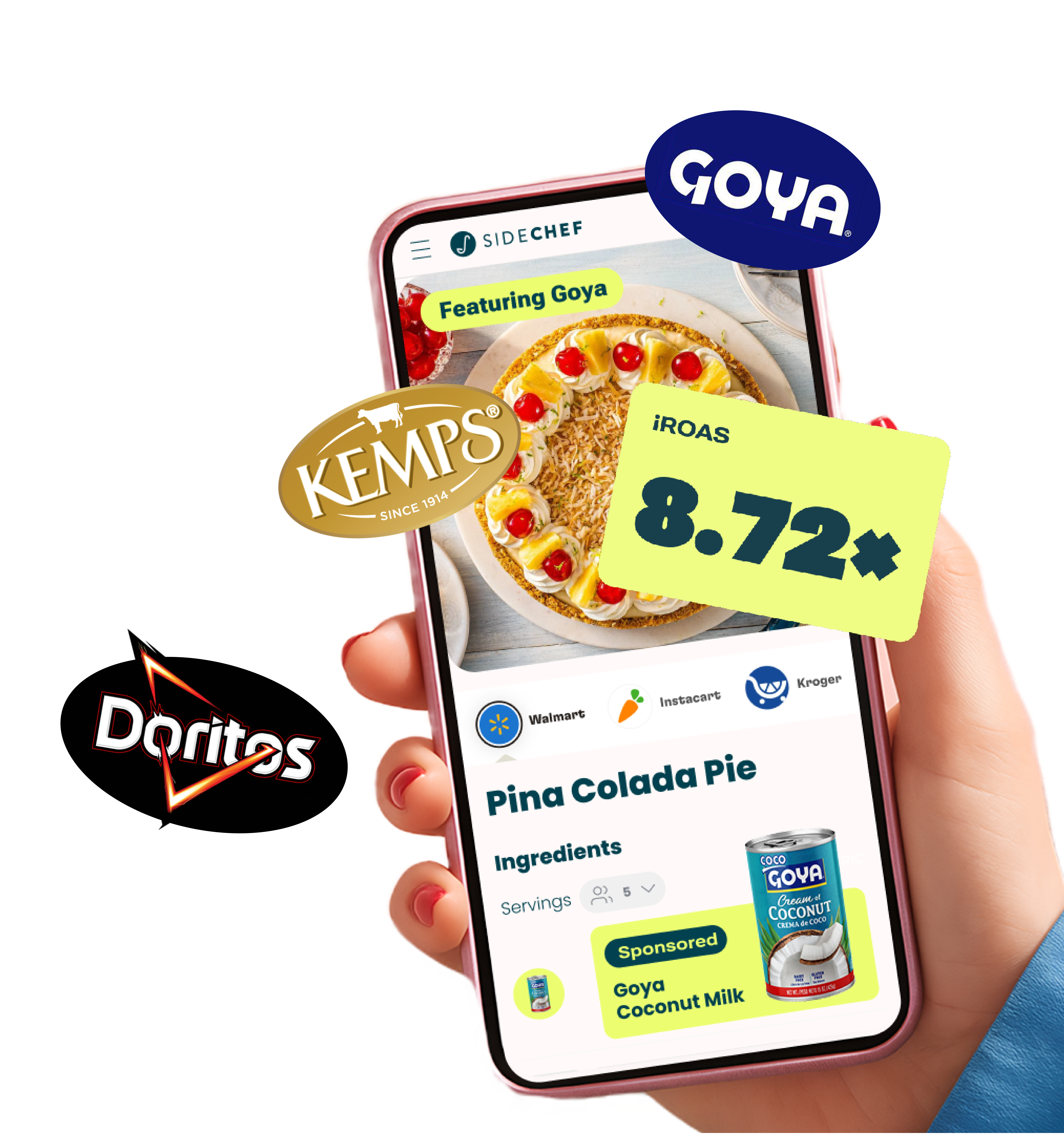 Brands like PepsiCo, Sun-Maid, McCormick, General Mills, Diageo, Eggland’s Best, Bob Evans, illy Coffee, and many more have evolved into year-round partnerships, where SideChef transforms recipe content into shoppable experiences — driving guaranteed retail orders and delivering proven ROAS.