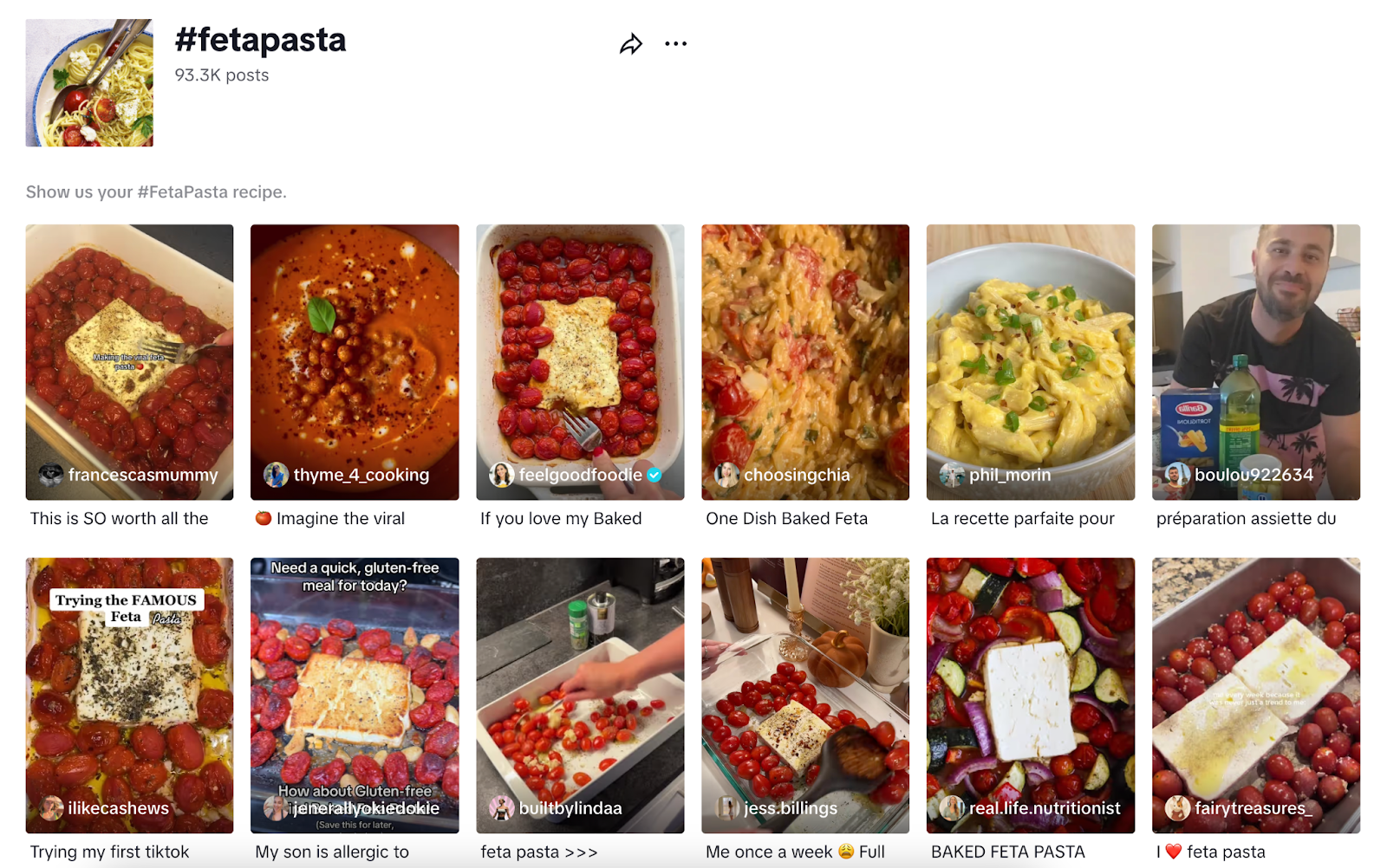 In early 2021, a Finnish food blogger’s simple recipe for baked feta and tomato pasta became a global TikTok sensation. The hashtag #fetapasta quickly racked up over 661 million views, while Instacart reported a 117% spike in block-feta cheese sales during the trend. As covered in reporting from Vogue and Allrecipes, this recipe is a prime example of how short-form content can shape real-world shopping behavior almost overnight.