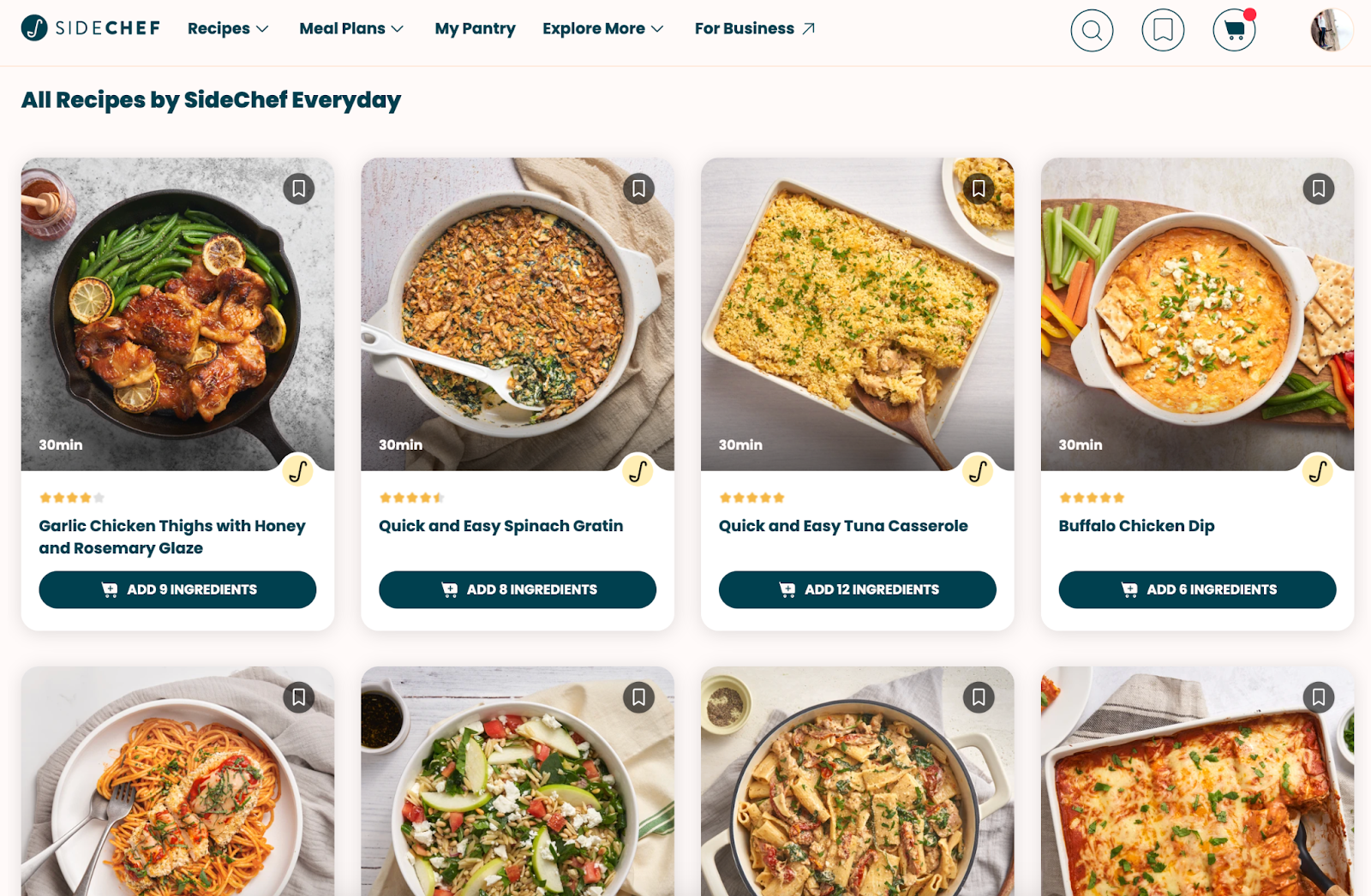 At SideChef, we tested our own collection of SideChef Everyday dinner ideas. Under 30 minutes to prepare, with less than 5 ingredients to purchase, besides your pantry items. It really was that simple of a recipe for success!
