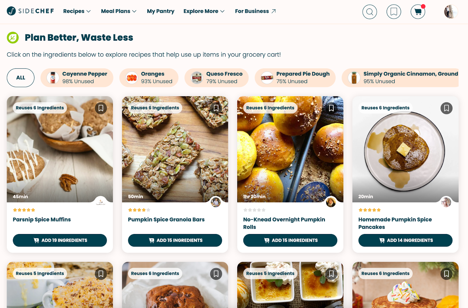 With just a few clicks, users can buy ingredients from their favorite recipes directly through SideChef’s shoppable experience. This makes it easier than ever to turn a moment of inspiration into an actionable grocery list, reducing friction and improving follow-through.